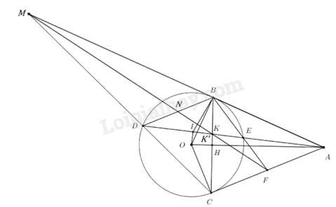 Từ (3) và (4) suy ra \(AK.AI = AH.AO{\mkern 1mu} {\mkern 1mu} {\mkern 1mu} \left( { = A{B^2}} \right)\) (đpcm)
