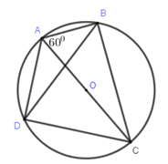\(\widehat {BDC} = \widehat {BAC} = {60^0}\) (góc nội tiếp cùng chắn cung \(BC\)).