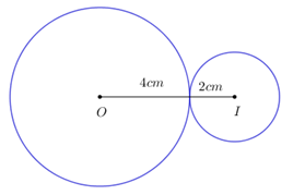 \( \Rightarrow \left( {O;\;4cm} \right)\) tiếp xúc ngoài với \(\left( {I;\;2cm} \right).\)