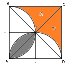 Tương tự, diện tích hình viên phân giới hạn bởi dây \(OA\) và cung \(OA\) trong hình tròn đường kính \(AD\) là \({S_{vpOA}} = \dfrac{\pi }{4} – \dfrac{1}{2}\).