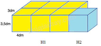 Khối H2 có chiều dài 4 dm, chiều rộng 3 dm, chiều cao 3,5 dm
