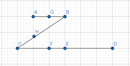 B là điểm ở giữa hai điểm G và H      (Sai vì ba điểm G, B, H không thẳng hàng)