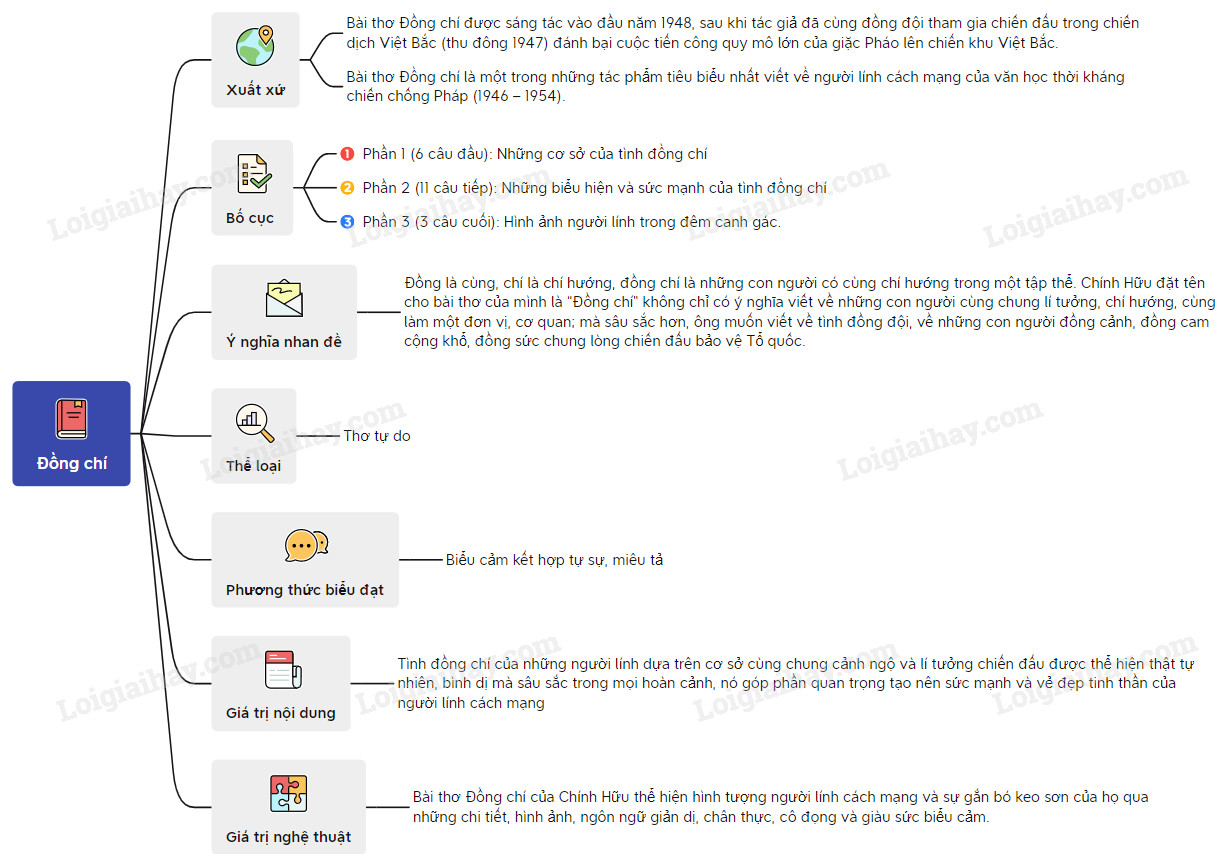 Đồng chí (Chính Hữu) bao gồm tóm tắt nội dung chính, lập dàn ý phân tích, bố cục, giá trị nội dung, giá trị nghệ thuật cùng hoàn cảnh sáng tác, ra đời của tác phẩm và tiểu sử, quan điểm cùng sự nghiệp sáng tác phong cách nghệ thuật giúp các em học tốt môn văn 8