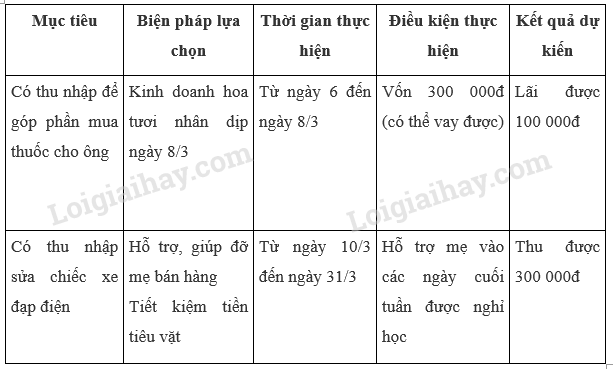 Hãy chọn biện pháp phát triển kinh tế gia đình phù hợp với nhu cầu và khả năng của em để lập kế hoạch thực hiện.