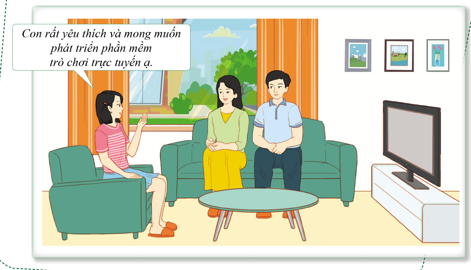 + Tình huống 1: Hồng yêu thích học ngành công nghệ thông tin. Tuy nhiên, bố mẹ muốn Hồng theo nghề truyền thống của gia đình.