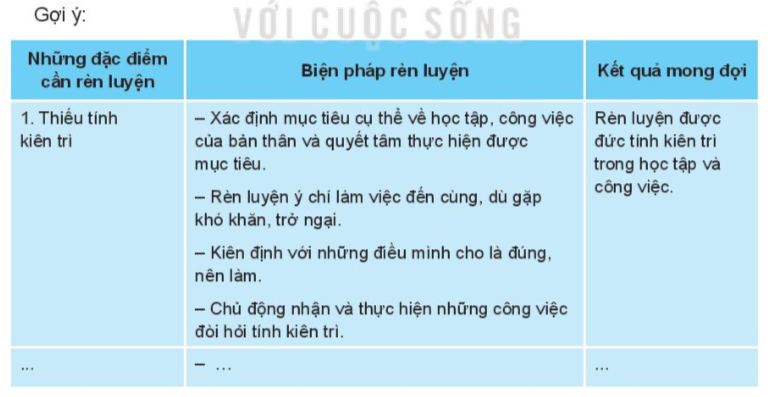 Em liên hệ bản thân và dựa vào gợi ý để xây dựng kế hoạch.
