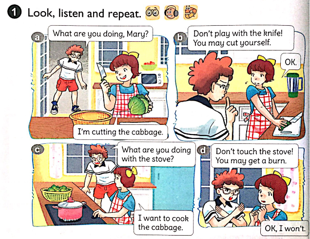 a) What are you doing, Mary? Bạn đang làm gì vậy Mary?I'm cutting the cabbage. Mình đang cắt cải bắp.