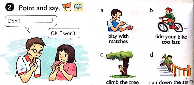 (Đừng trèo/leo cây! – Được rồi. Mình sẽ không trèo/leo cây.)