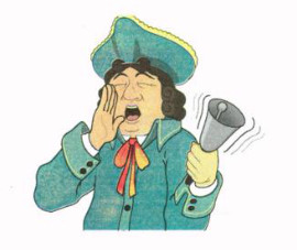 A.  Before newspapers were invented, town criers would go through city streets ringing a bell. They shouted the latest news as they were walking.