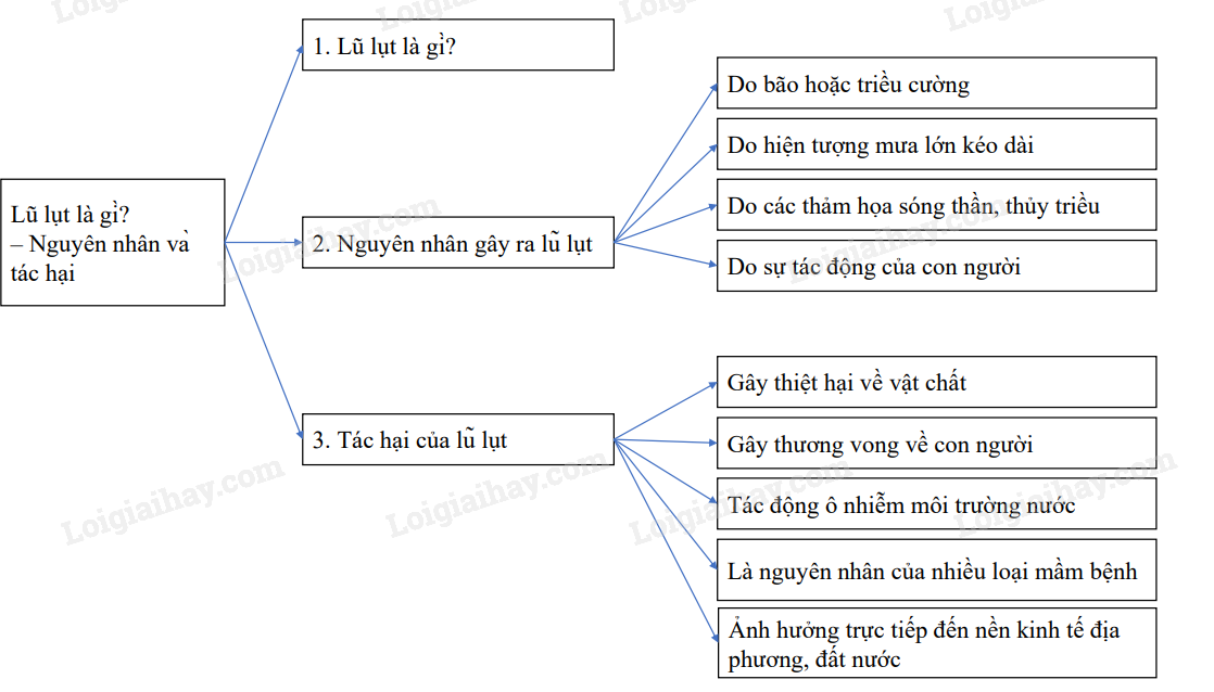 – Văn bản đi từ giải thích hiện tượng lũ lụt đến nguyên nhân gây ra lũ lụt và cuối cùng là tác hại của lũ lụt.
