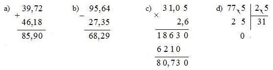 c) 31,05 × 2,6                                            d) 77,5 : 2,5
