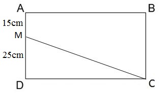 Cho biết diện tích hình chữ nhật ABCD là 2400cm2 (xem hình vẽ). Tính diện tích của hình tam giác MDC.