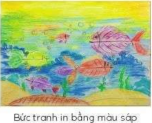 Em hãy tưởng tượng về một đàn cá, sau đó kết hợp in và vẽ cá bằng lá cây để có 1 bức tranh hoàn chỉnh