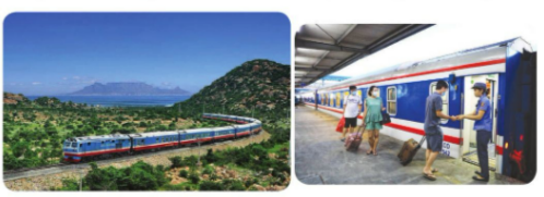 Quan sát hai bức ảnh về đoàn tàu Thống Nhất sau đây và viết 3 câu