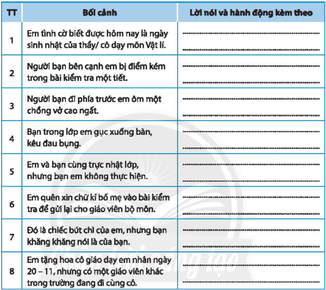 Em sẽ nói và làm như thế nào để vun đắp và giữ gìn tình cảm với bạn bè, thầy cô trong những tình huống sau.