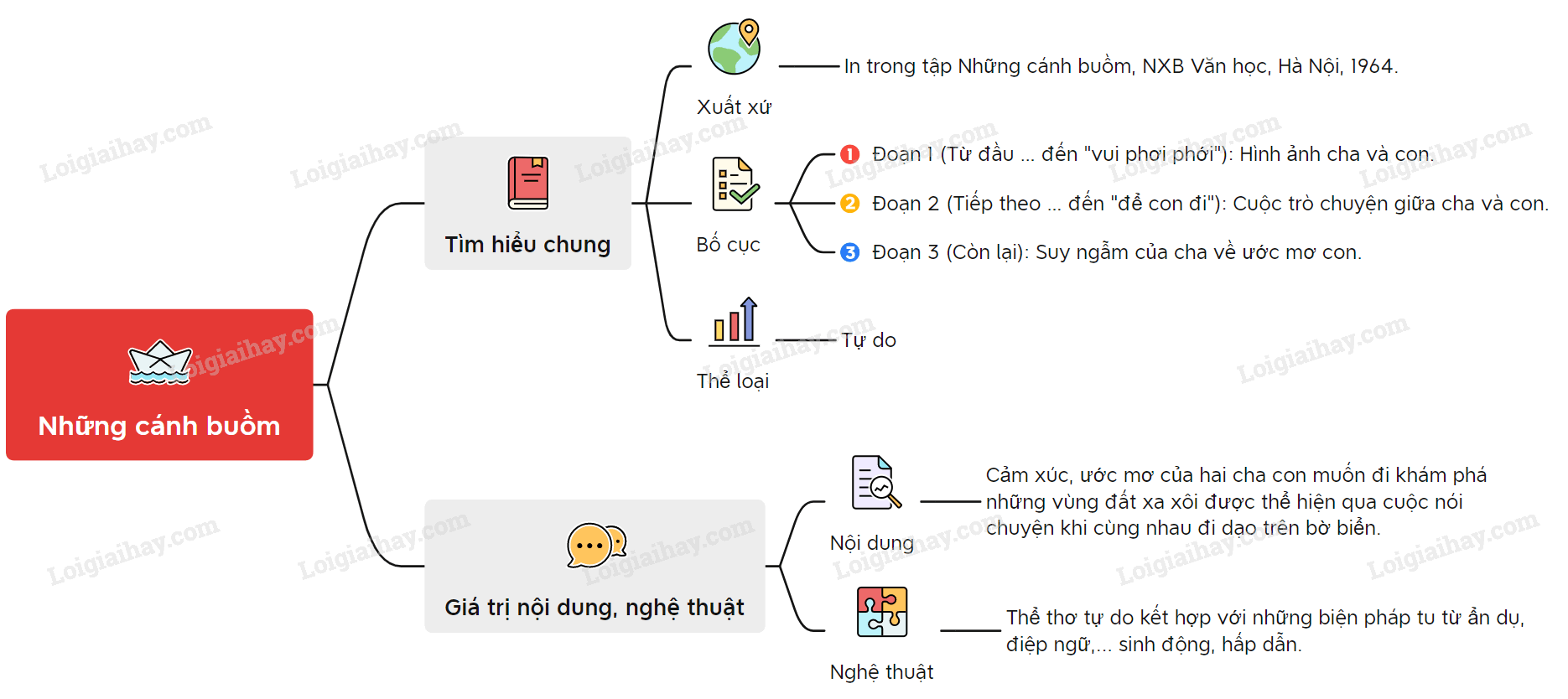 Sơ đồ tư duy bài thơ “Những cánh buồm”: