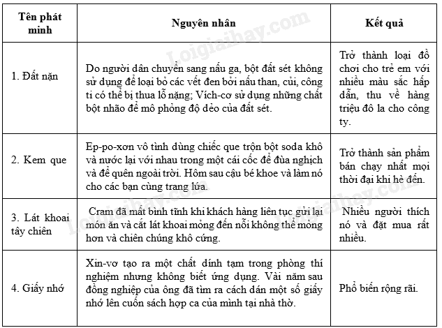 – Văn bản thuật lại sự ra đời không ngờ đến của một số vật dụng (đất nặn, giấy nhớ, que kem, lát khoai tây chiên). Sự kiện ấy nêu ở phần Sapo.