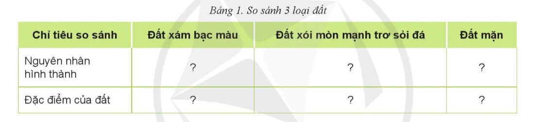 5. So sánh 3 loại đất theo mẫu Bảng 1.