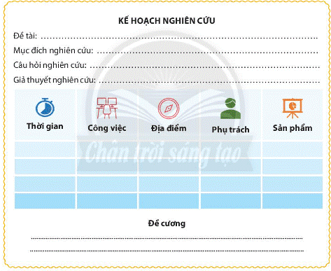 Bạn hãy dùng biểu bảng để lập kế hoạch nghiên cứu.