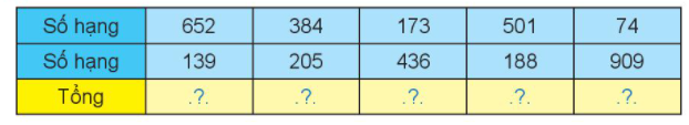 Em thực hiện tính tổng rồi viết vào ô trống.
