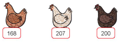 b) Tổng số trứng của cả ba con gà là 168 + 207 + 200 = 375 + 200 = 575 (quả)