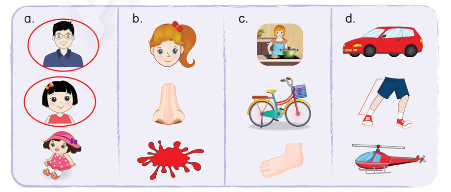 (Nghe và khoanh tròn những bức tranh có cùng âm.)