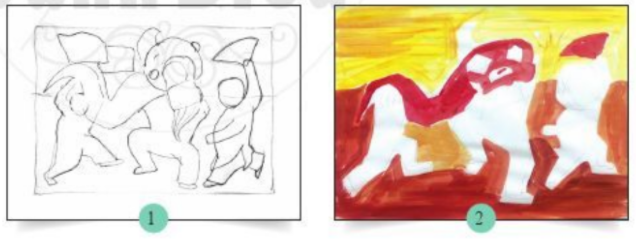 – Vẽ các nét màu khác nhau cho mỗi hình để bức tranh thêm hấp dẫn