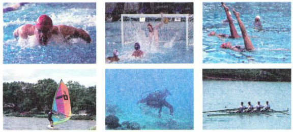 Task 1: Work in pairs. Look at the pictures and match the names with the appropriate water sports.