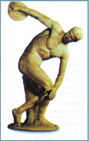 – Tượng Lực sĩ ném đĩa là một bức tượng kinh điển của Hy Lạp cổ đại. Người vận động viên đang thực hiện việc ném đĩa với một dáng vẻ hoàn hảo. Cơ bắp và biểu hiện tập trung của anh tạo ra ấn tượng như một mũi tên đang căng trên dây cung trước khi được thả ra.