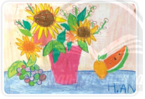 Nêu cảm nhận và phân tích: Bài vẽ em yêu thích. Hòa sắc trong bài vẽ. Cách diễn tả trong bài vẽ (bố cục, nét, hình, màu, đậm nhạt).