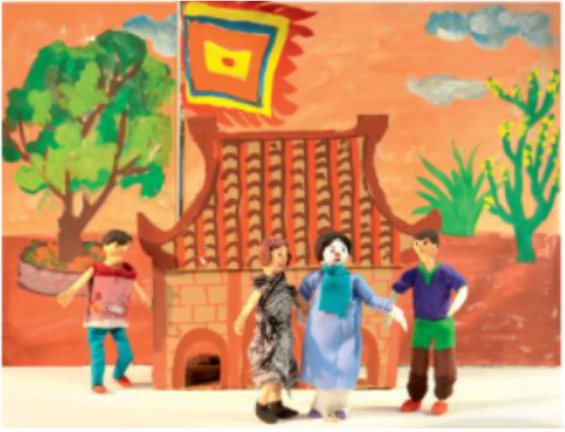 Nêu cảm nhận và phân tích: Hoạt cảnh em ấn tượng. Hình khối tỉ lệ của nhân vật với cảnh vật. Không gian, nhịp điệu của hình khối, màu sắc trong hoạt cảnh. Cách điều chỉnh để mô hình hoạt cảnh hoàn thiện hơn