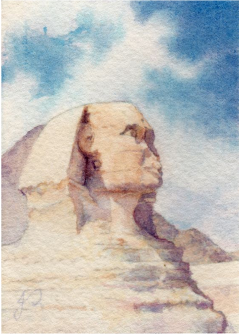 – Em vẽ tranh tượng nhân sư với màu nước trên giấy: