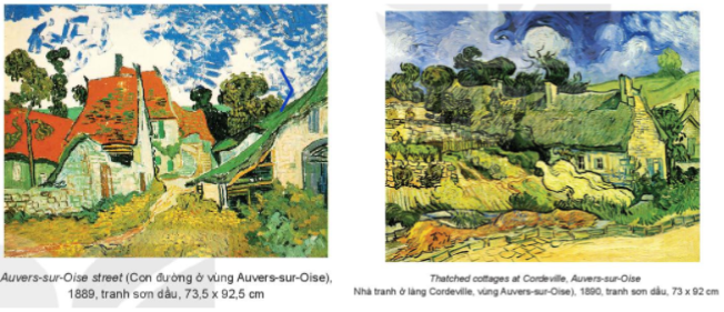 + Về màu sắc: Bức tranh “Con đường ở vùng Oise”: cam, xanh dương, xanh lá cây, vàng. Bức còn lại: vàng, xanh lá, xanh rêu xanh dương…