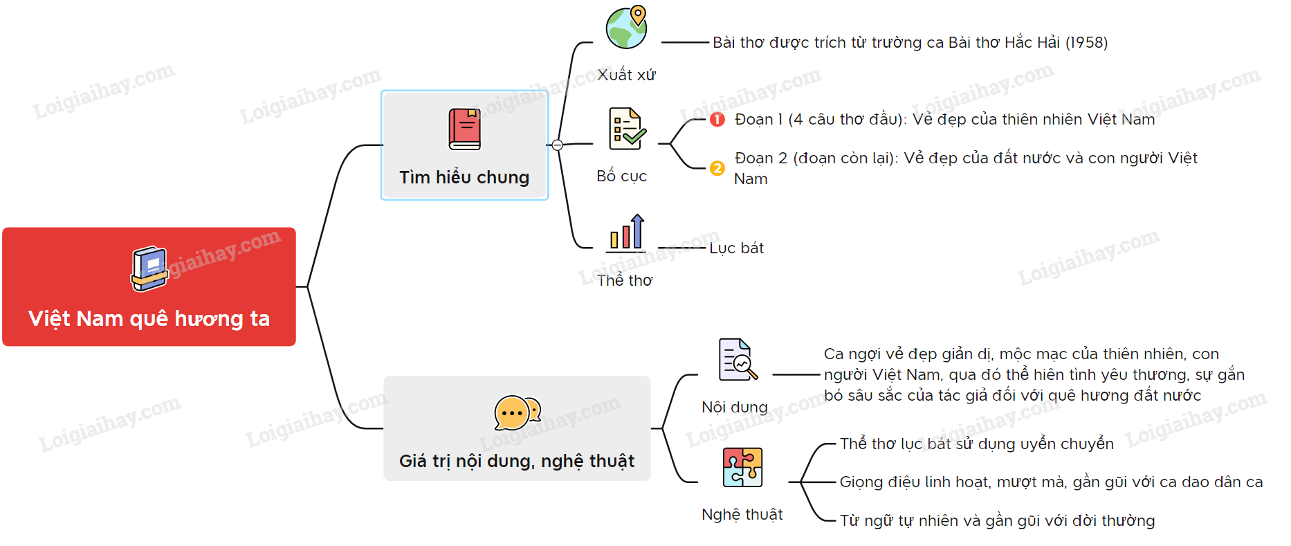 Sơ đồ tư duy bài thơ “Việt Nam quê hương ta”: