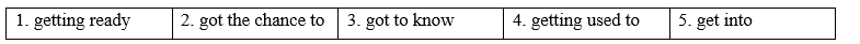 5. become interested in – get into (trở nên quan tâm đến – tham gia)