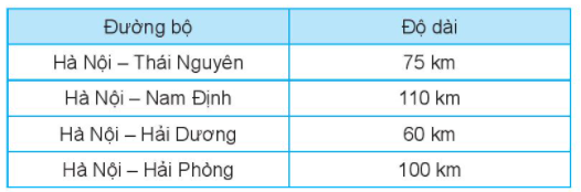 d) Trong hai tỉnh Thái Nguyên và Hải Dương, tỉnh gần Hà Nội hơn là Hải Dương và gần hơn 75 – 60 = 15 km.