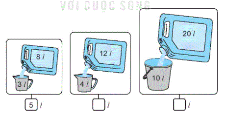 Tính theo công thức: Số lít nước còn lại = Số lít nước trong can – Số lít nước rót ra.