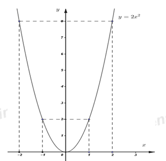 Vậy đồ thị hàm số \(\left( P \right):\;\;y = 2{x^2}\) là đường cong đi qua các điểm: \(\left( { – 2;\;8} \right),\;\;\left( { – 1;\;2} \right),\;\left( {0;\;0} \right),\;\;\left( {1;\;2} \right),\;\left( {2;\;8} \right).\)