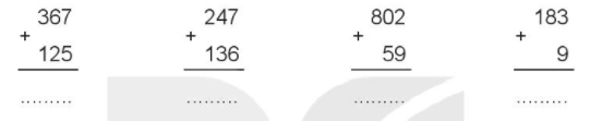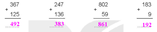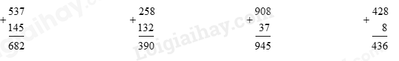 – Thực hiện cộng các chữ số thẳng cột theo thứ tự từ hàng đơn vị đến hàng chục, hàng trăm.