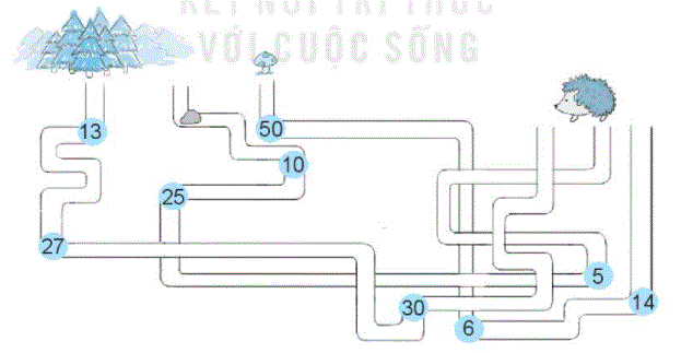 – Tính tổng các số trên đường nhím đi rồi điền vào chỗ chấm cho thích hợp.