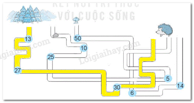 Tổng các số trên con đường nhím đi là: 30 + 27 + 13 = 57 + 13 = 70