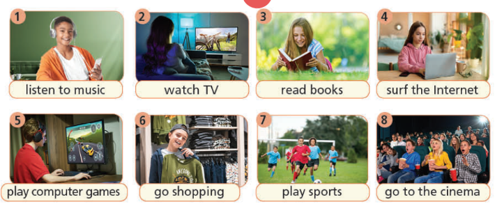 (Kể tên một số hoạt động trong thời gian rảnh rỗi khác. (Những) hoạt động nào em thích/không thích làm trong thời gian rảnh? Nói với bạn cặp của em.)