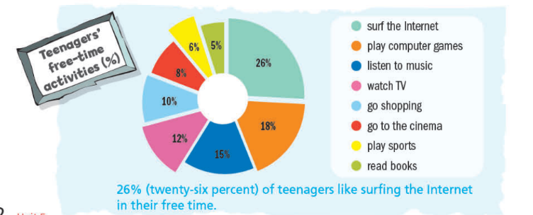 (26% (26 phần trăm) thanh thiếu niên thích lướt Internet khi rảnh rỗi.)
