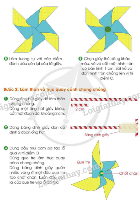 Cùng bạn làm chong chóng theo các bước dưới đây.