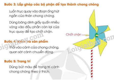 * Bộ phận chính của chong chóng đồ chơi là: cánh chong chóng, thân và trục chong chóng.