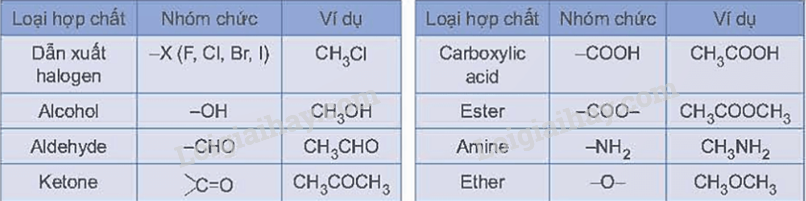 Một số loại nhóm chức cơ bản được thể hiện trong bảng sau: