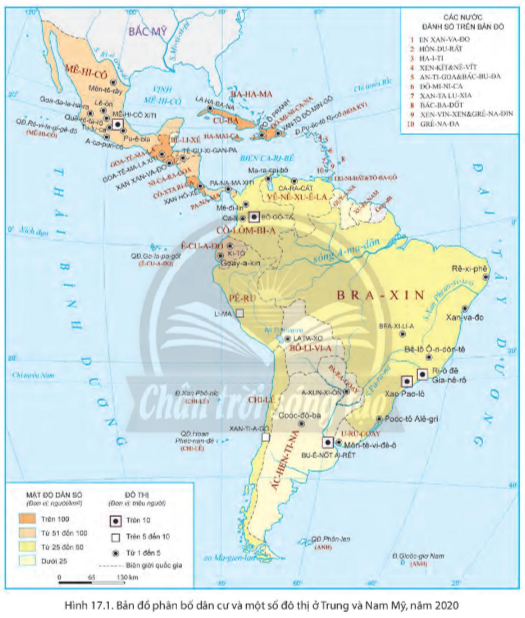– Nhận xét về sự phân bố của các đô thị ở Trung và Nam Mỹ: phân bố không đồng đều