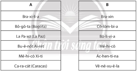 Hãy nối các đô thị (ở cột A) với các quốc gia (ở cột B) cho phù hợp