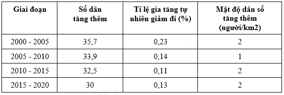 – Mật độ dân số của Trung và Nam Mỹ có xu hướng tăng lên, từ 26 người/km2 năm 2000 lên 33 người/km2 năm 2020.
