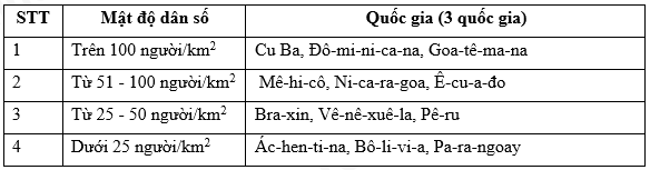 – Nhận xét về sự phân bố của các đô thị ở Trung và Nam Mỹ: phân bố không đồng đều